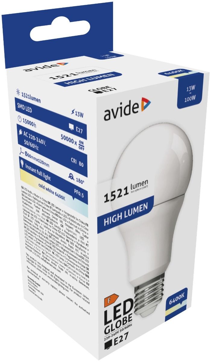 Avide LED Κοινή A60 13W E27 Ψυχρό 6400K