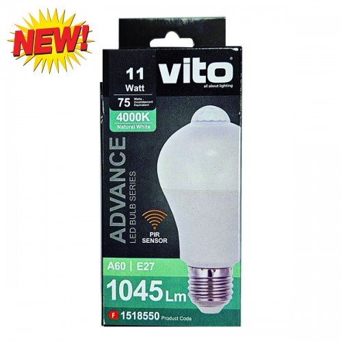 ΛΑΜΠΑ LED ΜΕΡΑΣΝΥΧΤΑΣ ΜΕ ΑΙΣΘΗΤΗΡΑ ΚΙΝΗΣΗΣ PIR A60 E27 11W 1045Lm 4000K VITO