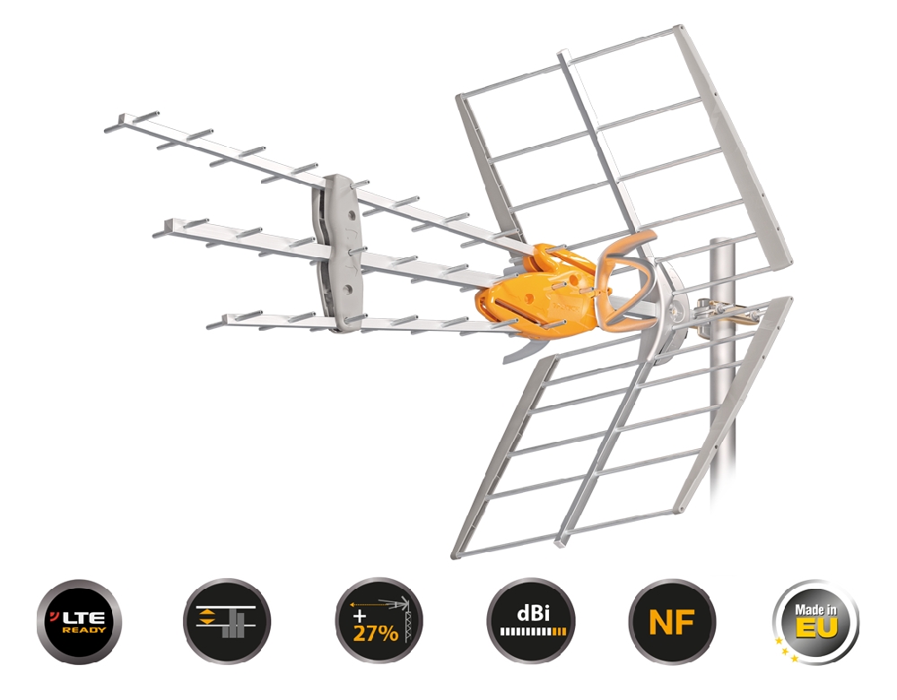 - Συνδυάζει 2 τεχνολογίες: Televes T-Force (μεγιστοποίηση του δυναμικού εύρους λήψης) και Televes Β.O.S.S. (A.G.C. και ισοστάθμιση), μαζί με 2πλή αποκοπή συχνοτήτων 4G-LTE.