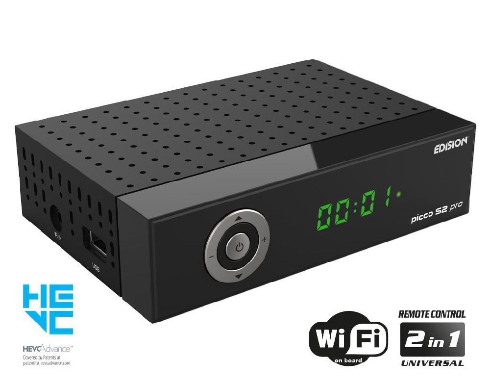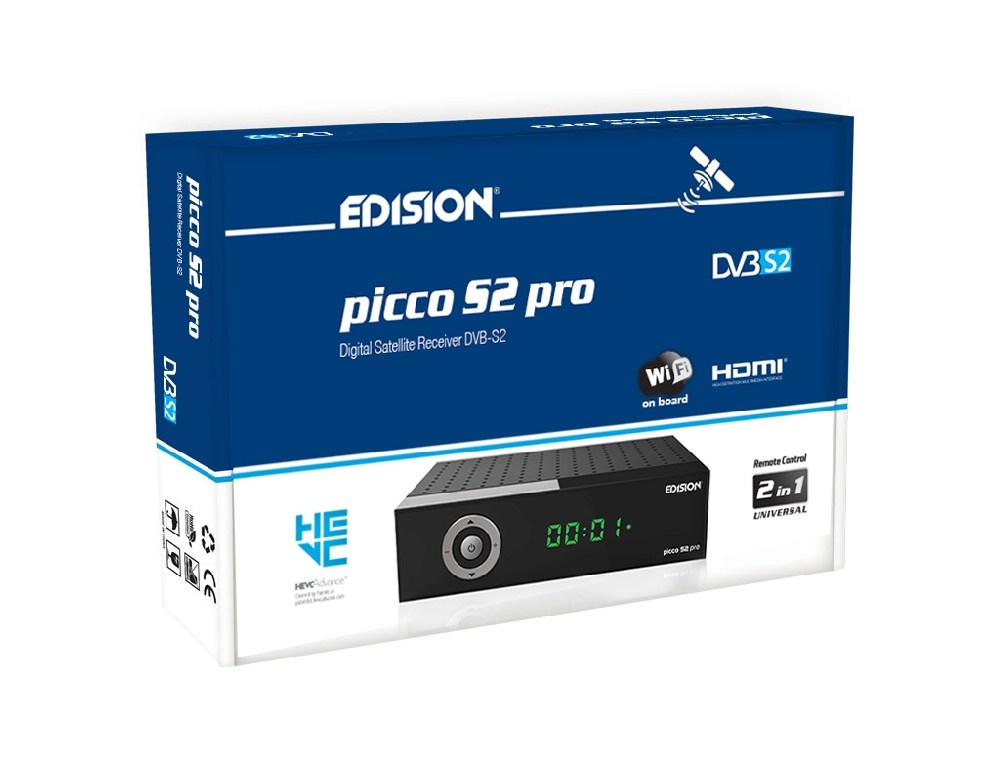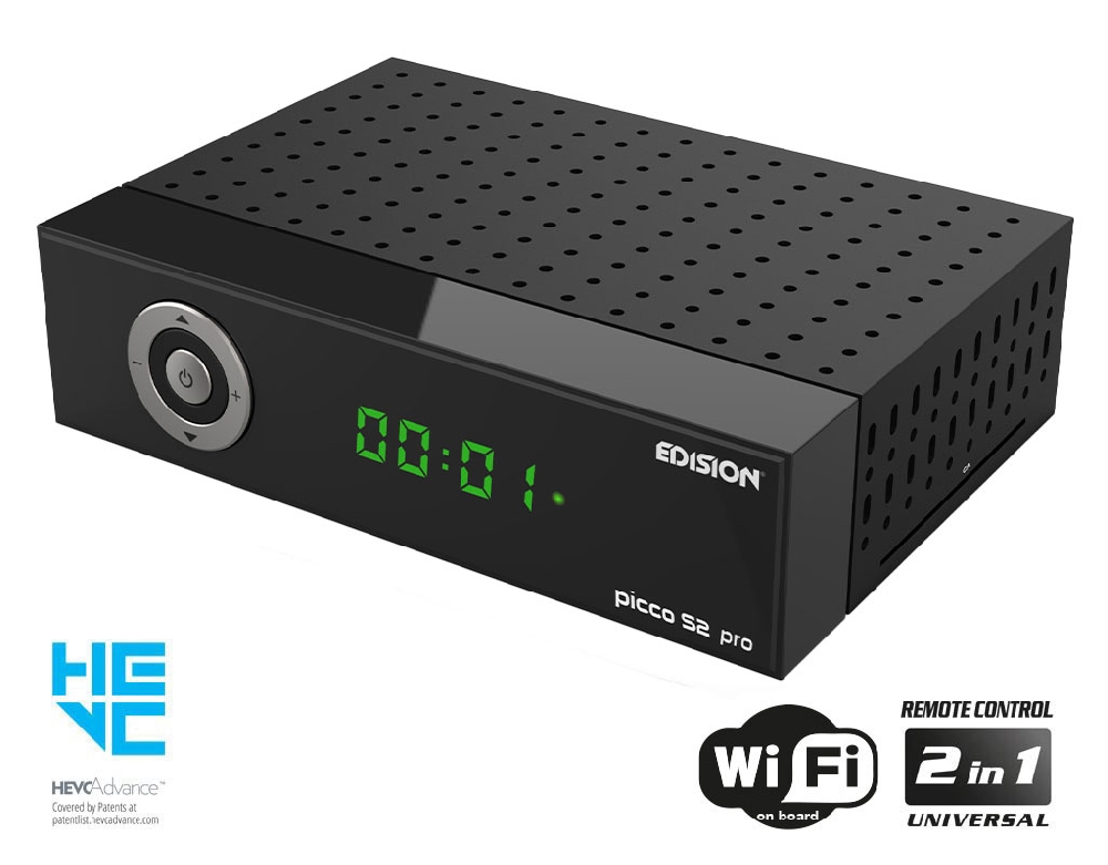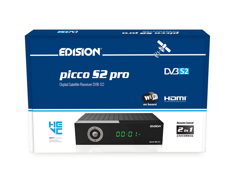 PICCO S2 pro. Δορυφορικός δέκτης EDISION με θύρα Card Reader, MULTISTREAM Δορυφορικό tuner DVB-S/S2 με Η265 HEVC υποστήριξη και ανάλυση έως και 1080p FULL HIGH DEFINITION. Ο νέας γενιάς επεξεργαστής, σας προσφέρει μιά ολοκαίνουρια εμπειρία ταχύτατης εναλλαγής και κίνησης στο OSD μενού και στα κανάλια, ενώ διαθέτει αποθηκευτική ικανότητα έως 6000 καναλιών, τηλεοπτικών και ραδιοφωνικών. Διαθέτει ενσωματωμένο WiFi module στα 100Mbps για να έχετε πρόσβαση σε Web Apps (YouTube, Stalker TV, Xtream, WebTV, Shoutcast, Dailymotion, Καιρός) και θέαση τους σε απλή τηλεόραση, ενώ υποστηρίζει και τεχνολογία UNICABLE & SCR UNICABLE 2, για ακόμα μεγαλύτερη ευελιξία στα σήματα δορυφορικής λήψης, σε συνδυασμό με τα MULTISTREAM κανάλια τα οποία λαμβάνει. Στα επιπλέον χαρακτηριστικά για να απολαύσετε τις πολύπλευρες δυνατότητες του, περιλαμβάνονται οι αναβαθμισμένες Media Player λειτουργίες του, καθώς διαθέτει δυνατότητα επεξεργασίας και περιεχομένου Η265 HEVC! H ενσωματωμένη USB θύρα πολλαπλών λειτουργιών, είναι κοντά σας για να σας παρέχει λειτουργίες PVR (εγγραφή των αγαπημένων σας προγραμμάτων), αναπαραγωγή αρχείων εικόνας, ήχου, φωτογραφιών & βέβαια αναβάθμιση λογισμικού για να έχετε τον PICCO S2 pro σας, πάντα σαν καινούριο στις λειτουργίες του. Αναβαθμισμένη είναι και η καθημερινή εμπειρία χρήσης του. Νέο LED Display και σχεδιασμός στην μπροστινή πλευρά, με 5 καλαίσθητα πλήκτρα αντίστοιχων λειτουργιών στην Οθόνη LED, σας προσφέρουν μιά σύγχρονη απλότητα χρήσης αλλά και την καθημερινή ευκολία μιάς αγαπημένης συσκευής. Τα πλεονεκτήματα για εσάς, ξεκινούν ήδη ανοίγοντας την εργοστασιακή συσκευασία του ΡICCO S2 pro σας! Εκεί θα ανακαλύψετε και το νέο, εργονομικό και αναβαθμισμένο Universal Τηλεχειριστήριο 2-σε-1 EDI-RCU 4 learn, με τα μεγάλα πλήκτρα, για χειρισμό του δέκτη και τεσσάρων (4) λειτουργιών LG/SAMSUNG(*) τηλεοράσεων, οι οποίες λειτουργίες είναι και ελεύθερα προγραμματιζόμενες! Όλα αυτά, για ακόμα πιο διασκεδαστική και απολαυστική χρήση των πολλών, αγαπημένων σας λειτουργιών. Συνοδεύεται απο την εγγύηση και την υποστήριξη της EDISION.