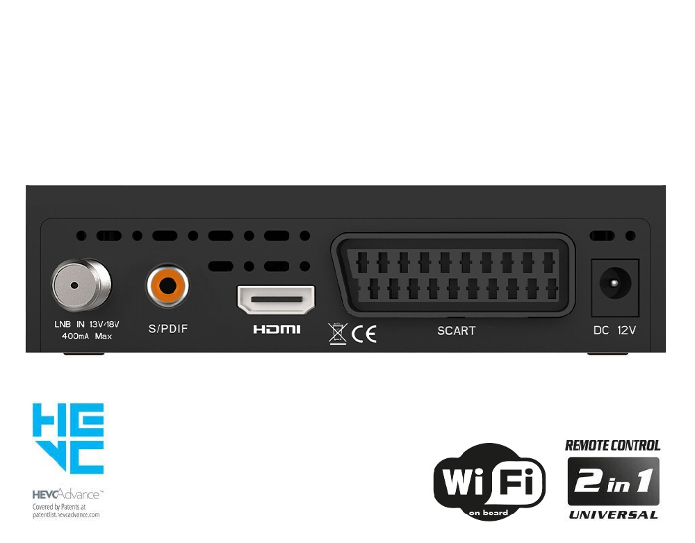 - Τύπος: Ψηφιακός Δορυφορικός Δέκτης για DVB-S2 H.265/HEVC