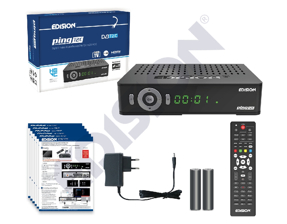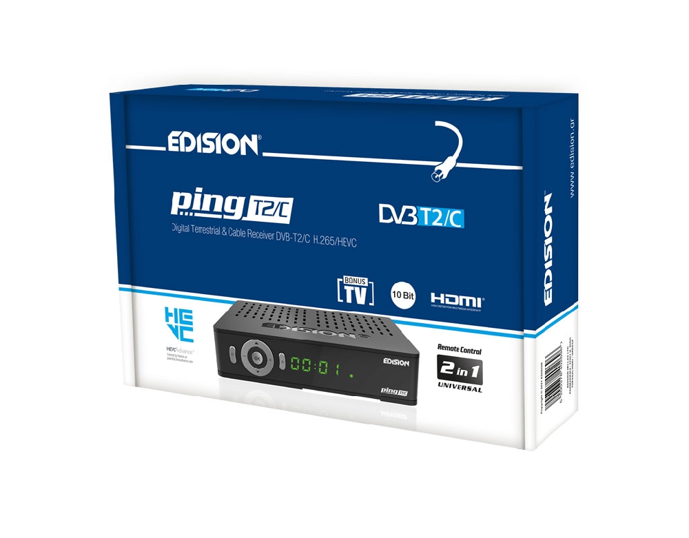 Ο PING T2/C είναι ο νέος EDISION αποκωδικοποιητής για Επίγειο Ψηφιακό και Καλωδιακό τηλεοπτικό σήμα, Full High Definition DVB-T2/C H265 HEVC 10 Bit, αλλά και πολλά περισσότερα. Σύγχρονος σχεδιασμός, αναβαθμισμένες κατασκευαστικές διαδικασίες και νέα αισθητική στη μπροστινή πλευρά, με οθόνη και πλήκτρα 7 λειτουργιών σε κυκλική διάταξη, συνδυάζονται με νέο επεξεργαστή και στοιχεία κατασκευής, για να σας παρέχουν μιά συνολικά κορυφαία εμπειρία θέασης και χρήσης. Ο PING T2/C, Επιγειος Ψηφιακός και Καλωδιακός δέκτης H265 HEVC 10 Bit, υποστηρίζει εφαρμογές YouTube, Stalker TV, Xtream, WebTV, Shoutcast, Dailymotion, Καιρός και Online αναβάθμιση λογισμικού, μέσω Ιντερνετ, καλωδιακά με την ενσωματωμένη θύρα RJ45 10/100 Mbps ή ασύρματα, με χρήση του επιπλέον είδους κεραία USB WiFi EDI-Mega. Οι λειτουργίες Media Player Η265 και PVR, υποστηρίζονται εύκολα απο τις δύο (2) θύρες USB 2.0 και επίσης υπάρχει και ενσωματωμένο Card Reader. Είναι σχεδιασμένος με εξαιρετική έμφαση στην ευκολία χρήσης, καθώς συνοδεύεται με το αναβαθμισμένο, εργονομικό και φιλικό στην χρήση, 2σε1 τηλεχειριστήριο EDI-RCU 3 Learn, το οποίο σας δίνει την δυνατότητα λειτουργίας του δέκτη και έως και 5 λειτουργιών TV LG/SAMSUNG* ή ελεύθερα προγραμματιζόμενων. Επιπλέον, η ευανάγνωστη 4-ψηφια οθόνη LED και τα πλήκτρα 7 λειτουργιών σε κυκλική διάταξη στην μπροστινή πλευρά, ενισχύουν την συνολικά αναβαθμισμένη εμπειρία θέασης και χρήσης του δέκτη. Με όλα αυτά τα κορυφαία, προηγμένα χαρακτηριστικά απο την EDISION, ο PING T2/C είναι έτοιμος να γίνει ακόμα μία εξαιρετικά πρωτοποριακή επιλογή τηλεοπτικού σας φίλου!