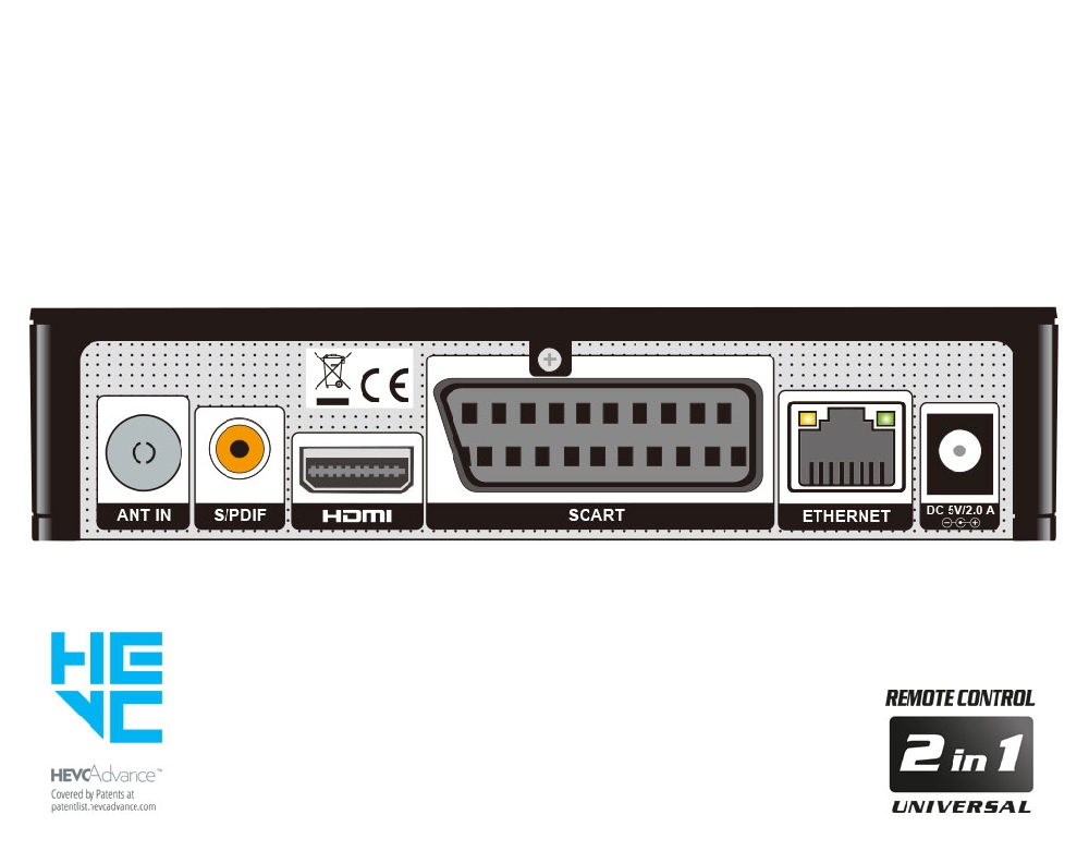 - Τύπος: Επίγειος Ψηφιακός & Καλωδιακός Δέκτης DVB-T2/C H.265/HEVC