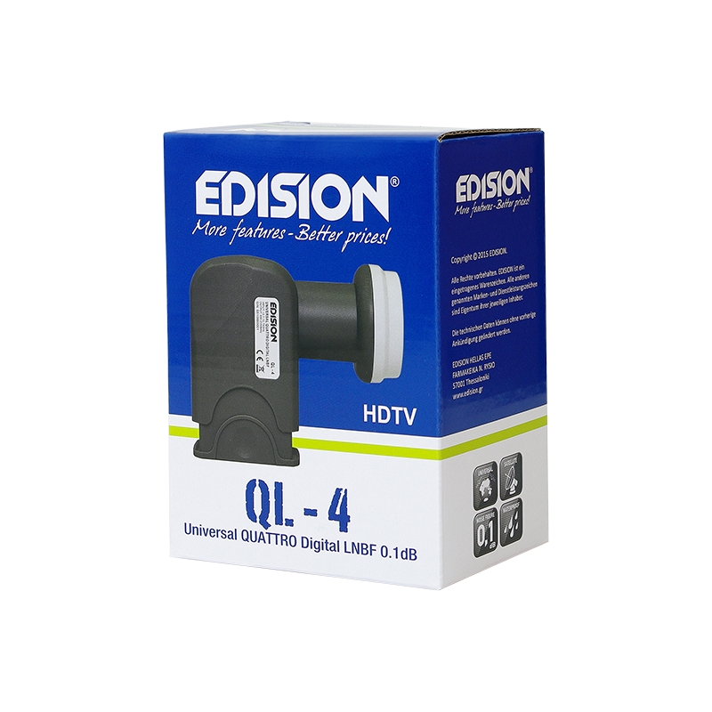 Τετραπλό LNB EDISION QL-4 συνδέεται μόνο με Πολυδιακόπτη για 1 Δορυφόρο.