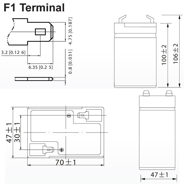 Διαστάσεις: ■ μήκος: 7 cm ■ πλάτος: 4,7 cm ■ ύψος: 10,1 cm Τύπος Terminal: F1
