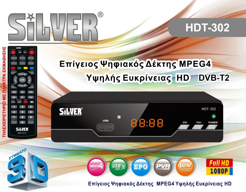 ΔΕΚΤΗΣ HDT-302 ΕΠΙΓΕΙΟΣ ΨΗΦΙΑΚΟΣ HD Τ2 MPEG2-4