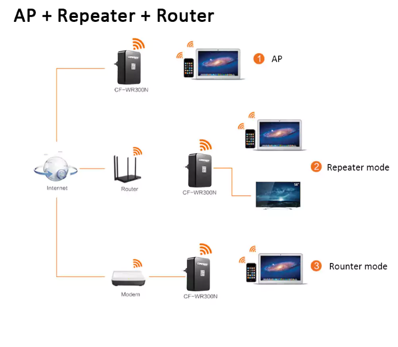 Το CF-WR300N της AIRLIVE είναι σχεδιασμένο για εύκολη επέκταση της κάλυψης και της ισχύος του ασύρματου σήματος στο υφιστάμενο ασύρματο δίκτυό σας, ώστε να εξαλειφθούν οι "νεκρές ζώνες". Με ασύρματες ταχύτητες Ν, το CF-WR300N αποτελεί μία λύση υψηλής ταχύτητας, που θα σας βοηθήσει να αφήσετε το τρέχον δίκτυό σας ως έχει, αλλά να επεκτείνετε δραστικά την εμβέλειά του, ώστε να μην έχετε διακοπές σε διάφορα σημεία στο χώρο σας.