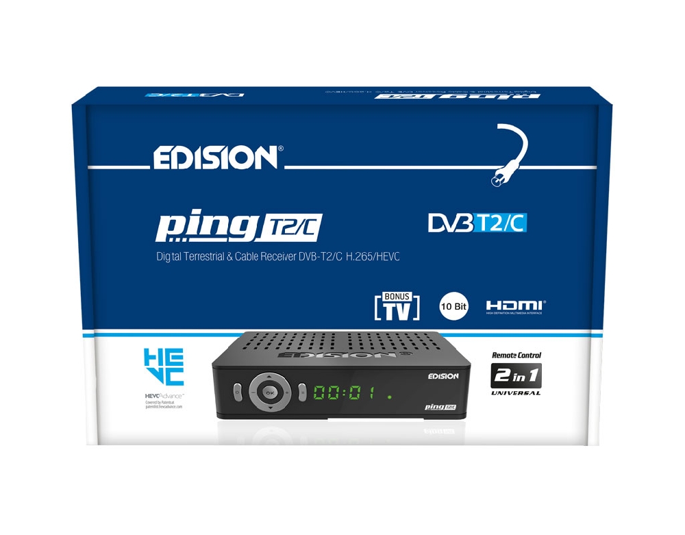Ο PING T2/C είναι ο νέος EDISION αποκωδικοποιητής για Επίγειο Ψηφιακό και Καλωδιακό τηλεοπτικό σήμα, Full High Definition DVB-T2/C H265 HEVC 10 Bit, αλλά και πολλά περισσότερα. Σύγχρονος σχεδιασμός, αναβαθμισμένες κατασκευαστικές διαδικασίες και νέα αισθητική στη μπροστινή πλευρά, με οθόνη και πλήκτρα 7 λειτουργιών σε κυκλική διάταξη, συνδυάζονται με νέο επεξεργαστή και στοιχεία κατασκευής, για να σας παρέχουν μιά συνολικά κορυφαία εμπειρία θέασης και χρήσης. Ο PING T2/C, Επιγειος Ψηφιακός και Καλωδιακός δέκτης H265 HEVC 10 Bit, υποστηρίζει εφαρμογές YouTube, Stalker TV, Xtream, WebTV, Shoutcast, Dailymotion, Καιρός και Online αναβάθμιση λογισμικού, μέσω Ιντερνετ, καλωδιακά με την ενσωματωμένη θύρα RJ45 10/100 Mbps ή ασύρματα, με χρήση του επιπλέον είδους κεραία USB WiFi EDI-Mega. Οι λειτουργίες Media Player Η265 και PVR, υποστηρίζονται εύκολα απο τις δύο (2) θύρες USB 2.0 και επίσης υπάρχει και ενσωματωμένο Card Reader. Είναι σχεδιασμένος με εξαιρετική έμφαση στην ευκολία χρήσης, καθώς συνοδεύεται με το αναβαθμισμένο, εργονομικό και φιλικό στην χρήση, 2σε1 τηλεχειριστήριο EDI-RCU 3 Learn, το οποίο σας δίνει την δυνατότητα λειτουργίας του δέκτη και έως και 5 λειτουργιών TV LG/SAMSUNG* ή ελεύθερα προγραμματιζόμενων. Επιπλέον, η ευανάγνωστη 4-ψηφια οθόνη LED και τα πλήκτρα 7 λειτουργιών σε κυκλική διάταξη στην μπροστινή πλευρά, ενισχύουν την συνολικά αναβαθμισμένη εμπειρία θέασης και χρήσης του δέκτη. Με όλα αυτά τα κορυφαία, προηγμένα χαρακτηριστικά απο την EDISION, ο PING T2/C είναι έτοιμος να γίνει ακόμα μία εξαιρετικά πρωτοποριακή επιλογή τηλεοπτικού σας φίλου!