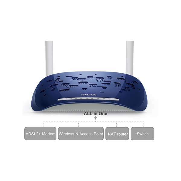 ■ All-in-One Device: ADSL2+ Modem, NAT Router, 4-Port Switch and Wireless N Access Point
