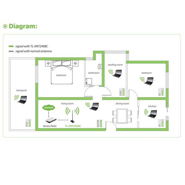 Replacing your wifi antenna with TL-ANT2408CL will significantly increase the range and strength of your wifi signal. This quality built omni-directional antenna is a direct replacement for the antenna that comes standard with your router, access point. Because it is omni-directional, no aiming is equired - it can send and receive wifi in all directions.